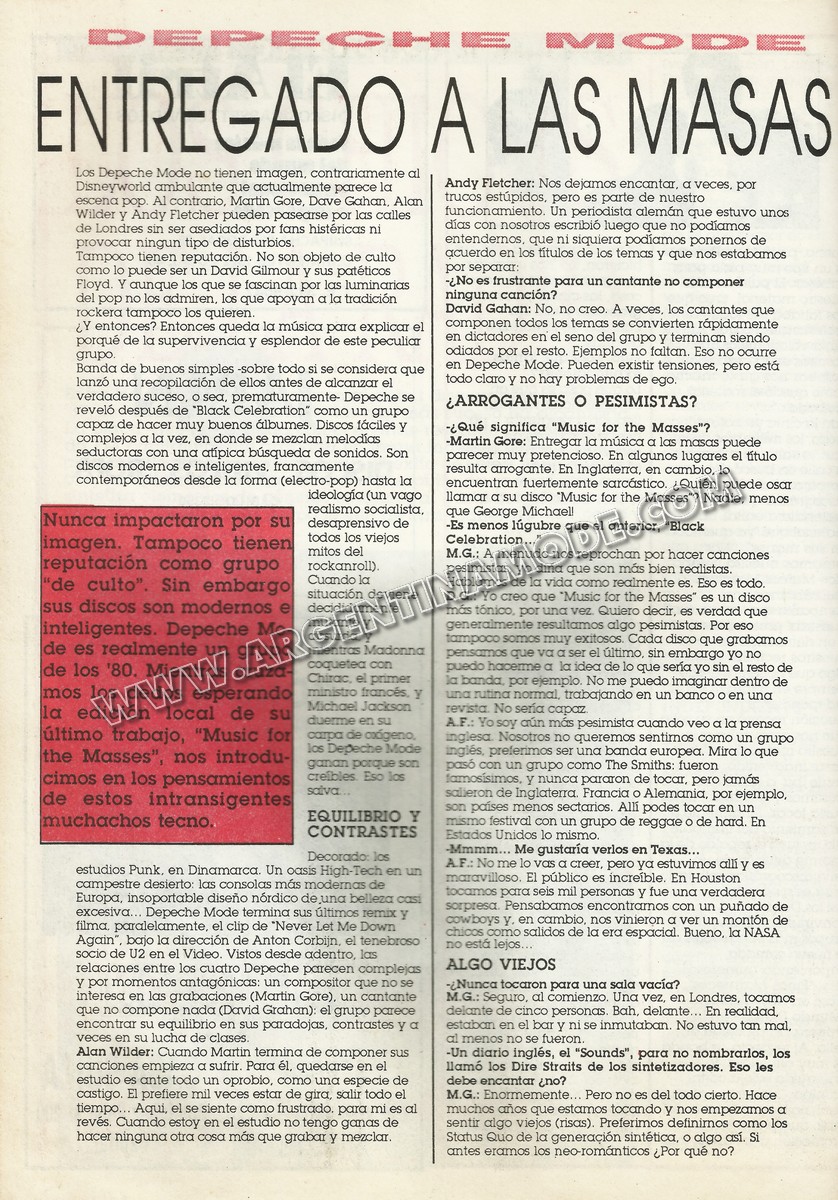 D.G.: Yo creo que "Music for the Masses" es un disco más